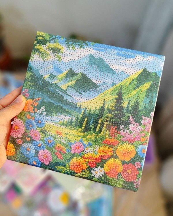 DIAMOND PAINTING 20X20 BASTIDOR M FLORES EN LAS MONTAÑAS