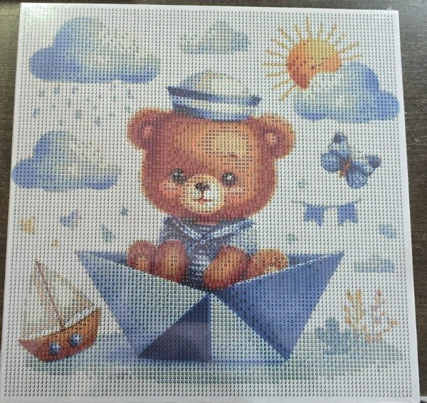 DIAMOND PAINTING 30X30 BASTIDOR OSITO MARINERO EN EL BARCO