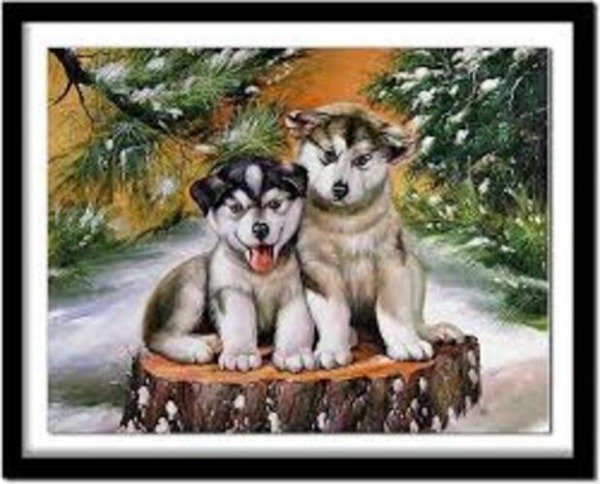 DIAMOND PAINTING 30X40 CACHORRITOS EN LA NIEVE