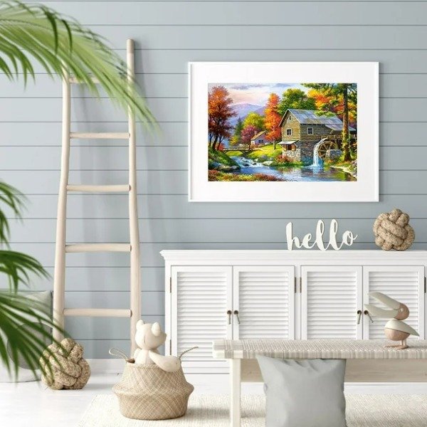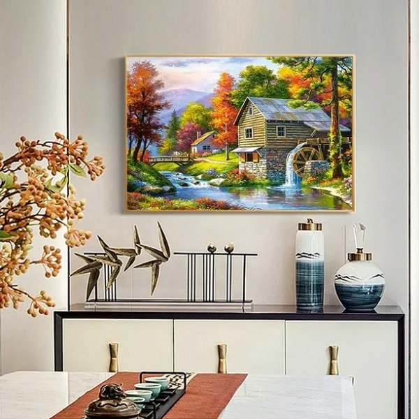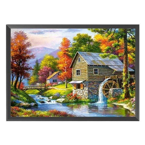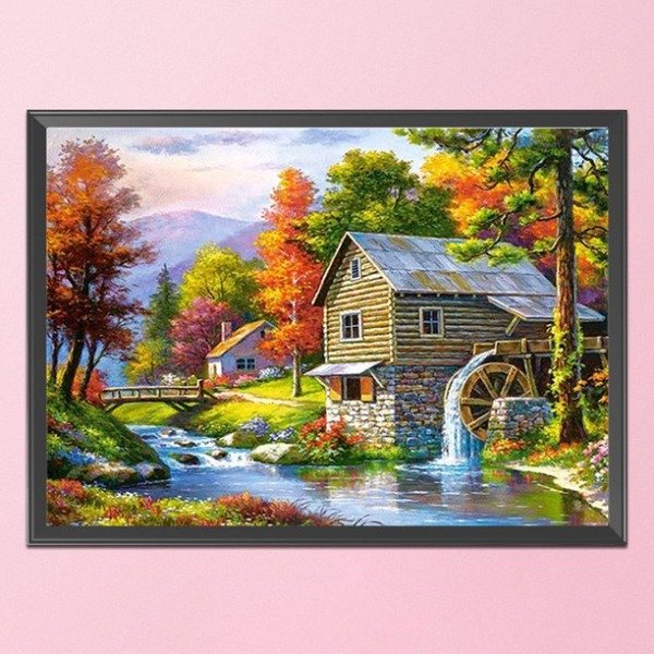 DIAMOND PAINTING 30X40 CASA DE RIO Y MOLINO