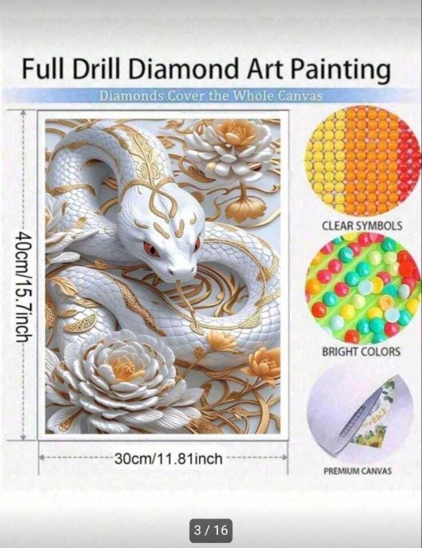 DIAMOND PAINTING KIT COMP 30x40 HERMOSA SERPIENTE BLANCA