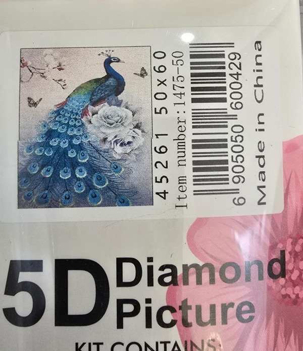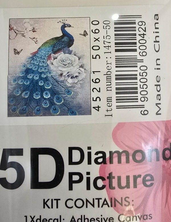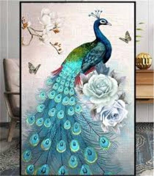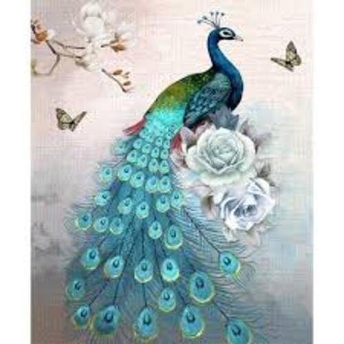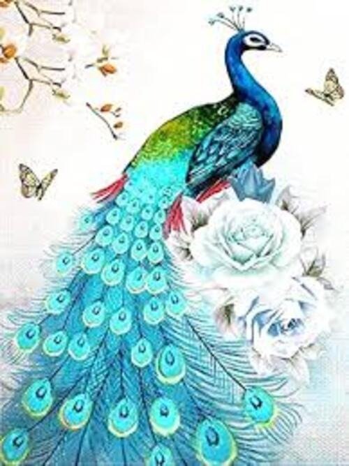 DIAMOND PAINTING 50X60 HI STONE PAVO REAL EN FLORES BLANCAS