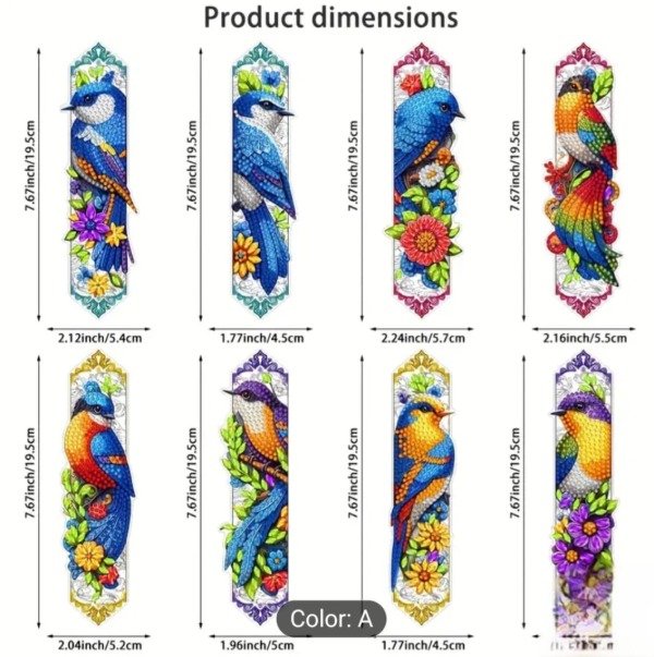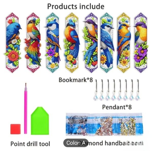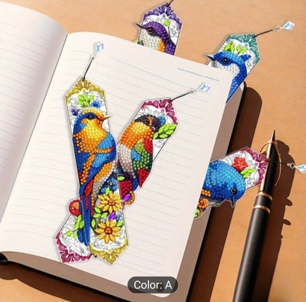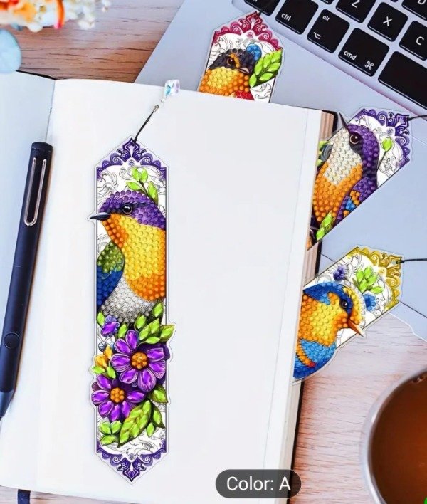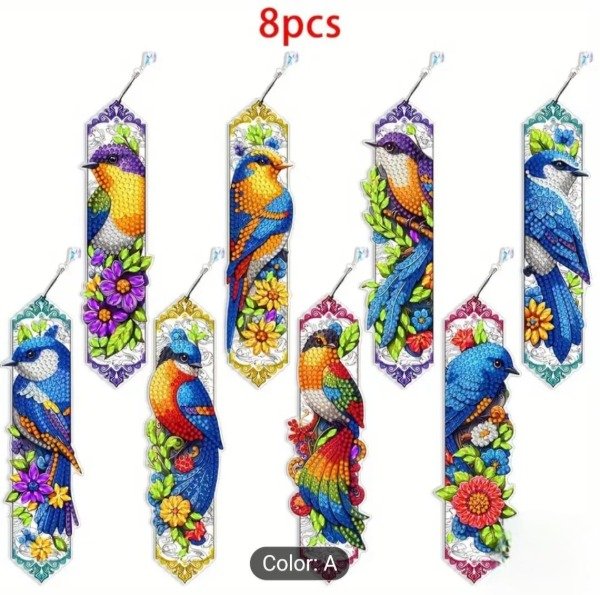 DIAMOND PAINTING KIT SEÑALADORES PAJARITOS COLORES X8