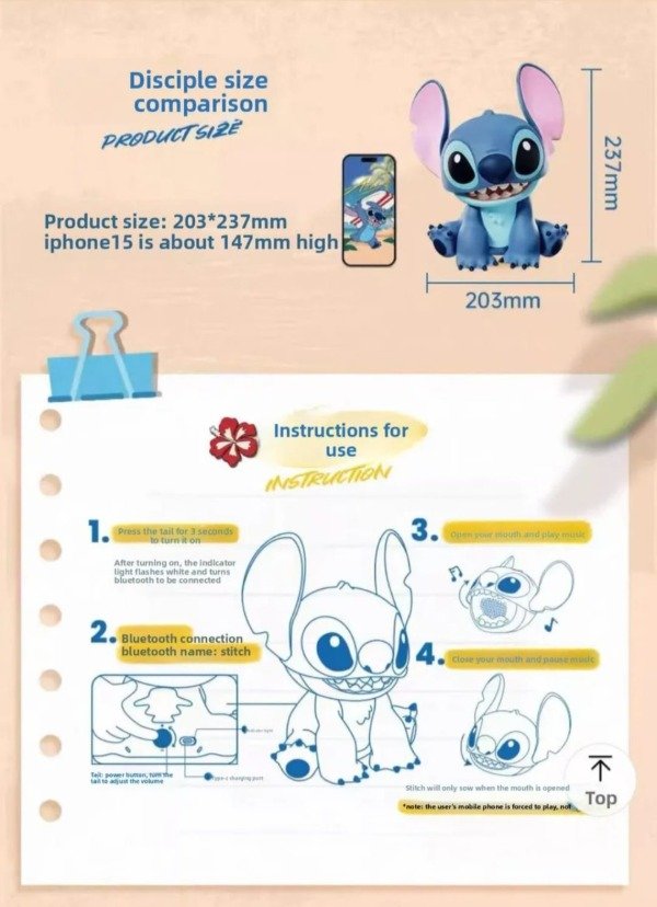 Nombre del producto: Altavoz de la serie Stitch, gran muñeco
