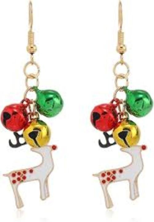 Pendientes , Aros Navideños Para Mujer, RENO CON CASCABELES